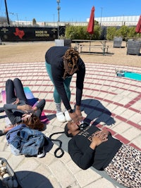 Korey Is our owner & has a BS in kinesiology teaching. 200 hours of YTT for ground & aerial yoga and is in the process of getting her personal training certification. She’s been into health and wellness for 6 years.